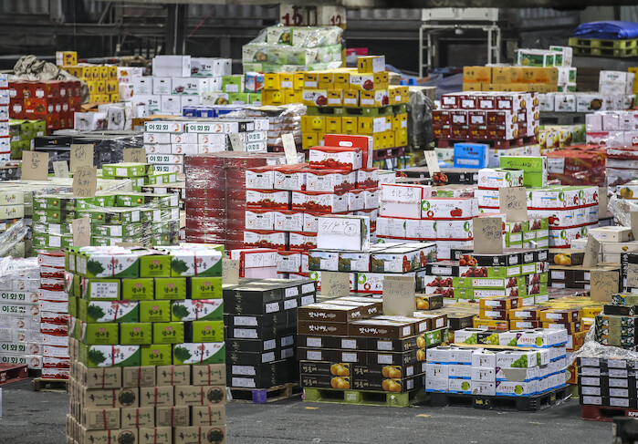 ▲ 서울 송파구 가락농수산물종합도매시장에 과일이 쌓여있다. (사진=서울시) |