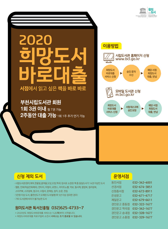 | ▲ 2020년 부천시 희망도서바로대출서비스 이용 안내문. (자료=부천시 제공) |
