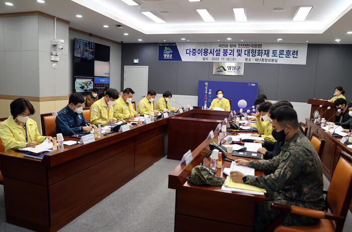[세계로컬타임즈 강석운 기자] 영암군은 2022년 재난대응 안전한국훈련의 첫 시작으로 다중이용시설 붕괴 및 대형화재 대응 토론훈련을 16일 개최했다고 밝혔다.