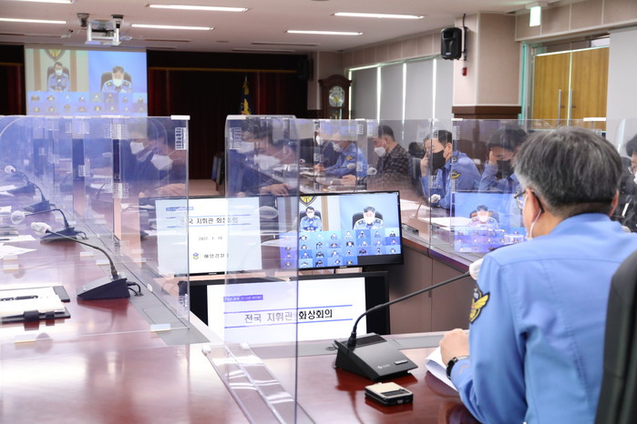 | ▲김종욱 서해지방해양경찰청장은 18일 청사 대회의실에서 열린 지휘관 화상회의에서 ‘빈틈없는 해양 중대재해 예방’을 강조하고 있다. (사진=서해지방해양경찰청) |