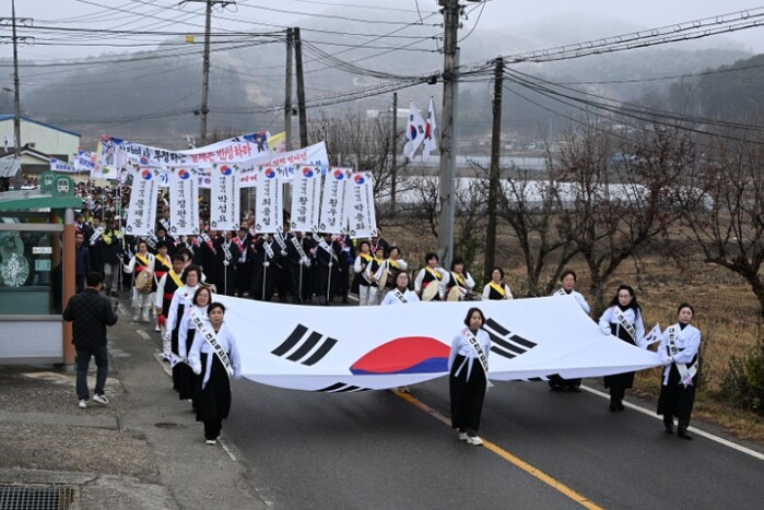 이날 행사에서는 당시 만세운동의 발자취를 따라가는 재현 행렬이 진행됐다. 참가자들은 충화면행정복지센터에서 출발해 독립운동의거 기념공원까지 태극기를 들고 행진하며 1919년 그날의 함성을 재현했다.