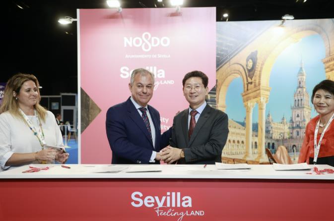 이 시장은 이날 '관광혁신 서밋(TSI) 2025'이 열리고 있는 세비야 시의 박람회장 피베스(FIBES)에서 호세 루이스 산스 세비야 시장과 우호 협약식을 갖고 협약문에 서명했다.