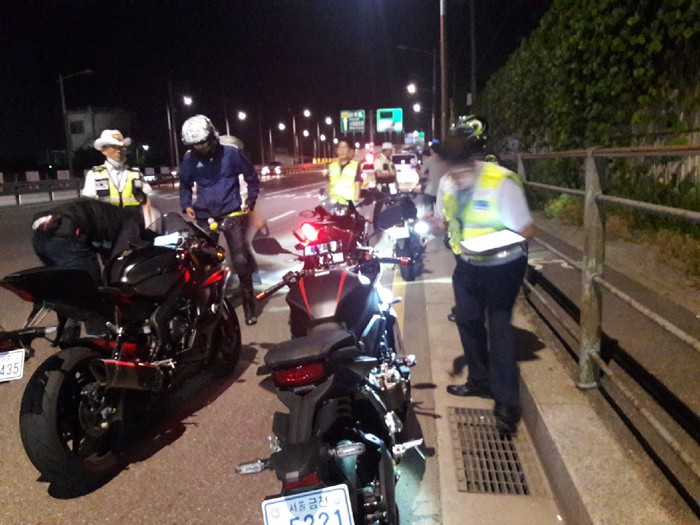 | ▲ 시흥경찰서, 한국교통안전공단 등 유관기관과 합동으로 이륜차 단속을 하고 있다. (사진=시흥시 제공) |