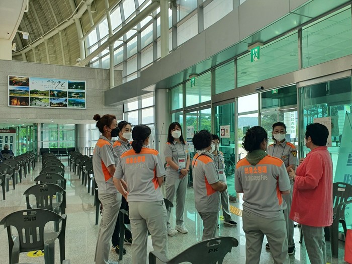 | ▲백신 접종 자원봉사에 참여하는 영월 여성 의용 소방대 단체. (사진=영월군) |