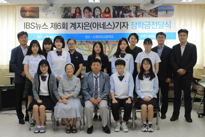 15일 소명여고에 따르면 올해로 6번째를 맞는 IBS뉴스(발행인 계경석) 계지은 기자 장학금 전달식 행사를 열고 10명의 학생에게 장학금을 전달했다.