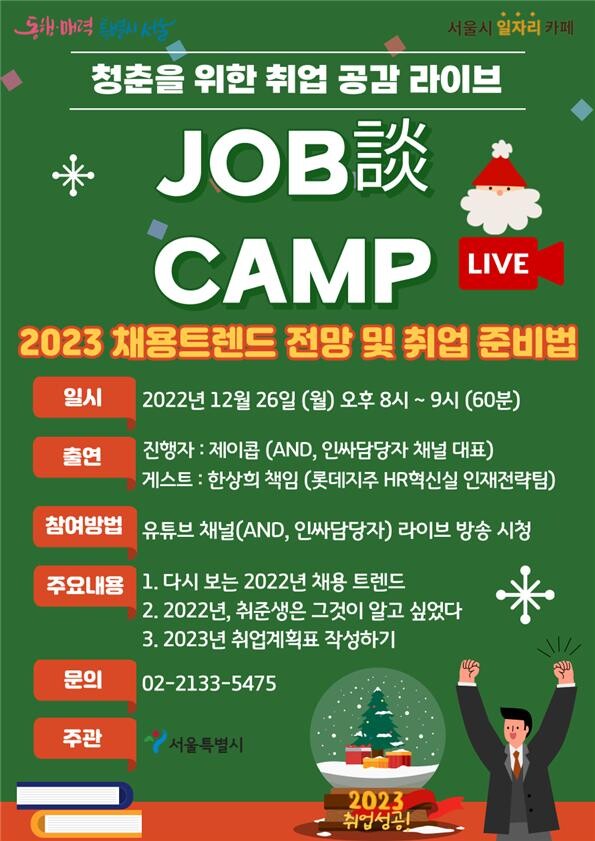 26일 저녁 8시부터 ‘2023년 채용동향 및 취업준비법’을 주제로 내년도 채용 정보를 제공하는 한편, 그간 취업준비생들이 가장 궁금해했고, 어려워하는 면접 질문에 대한 답변도 짚어본다.