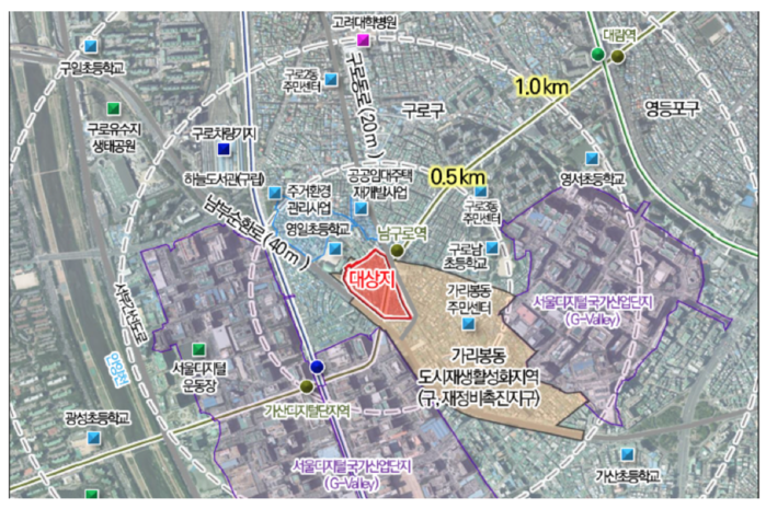 서울시는 낙후된 주거환경 개선과 더불어 첨단 산업지역으로 변화하는 가산·대림 광역중심의 미래 주거수요에 대응하기 위해 이 지역 일부를 준주거지역으로 용도지역을 상향, 상업·업무·주거 기능이 결합된 복합주거단지로 조성할 계획이다.