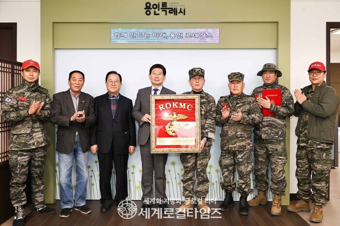 (사)용인시해병대전우회지회 허정 지회장 등 7명은 16일 이상일 시장 집무실을 방문해 이 시장에게 감사패와 감사장을 전달했다.
