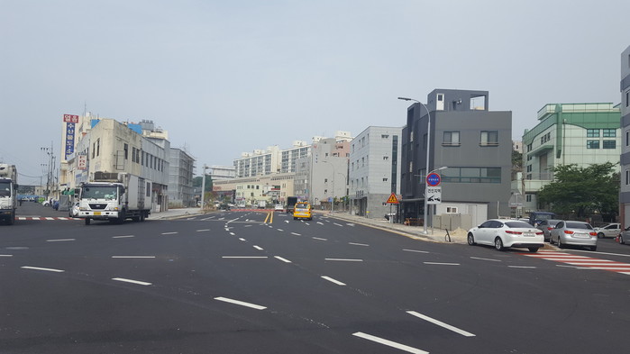 제주시에 따르면 이 지역은 최근 대형 크루즈선 입항과 해상 물류 수송량 증가 등으로 기존 도로폭이 좁고 대형 화물차량 통행으로 시야확보가 어려워 도로 확장 요구가 끊임없이 제기돼 왔었다.