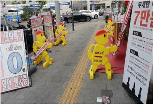조사결과, 총 74,320건(1km당 44건)이 설치기준에 맞지 않거나 교통약자 보행에 불편을 주고 있는 것으로 나타났다.
