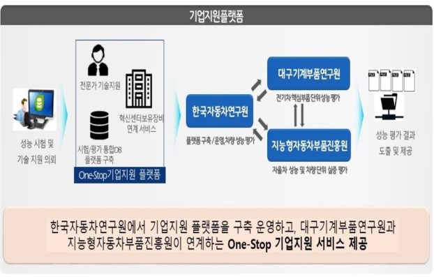 | ▲ 전기자율차 활성화를 위한 One-Stop 기업지원 서비스 체계도. (사진=한국자동차연구원 제공) |