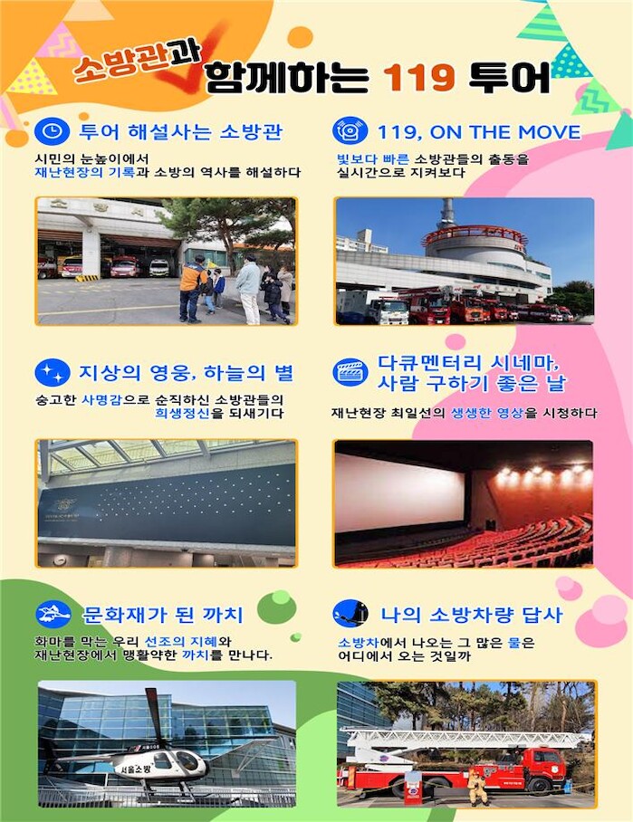 119 투어 코스에 동작소방서, 시민안전체험관, 에어파크(대한민국 공군기 전시장), 기상청을 포함함으로써 투어에 참가하는 시민들은 안전, 교육, 안보, 과학에 관한 다양한 이야기를 접하게 된다.