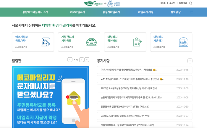 전기 등 가정 에너지를 20% 이상 절감한 에코마일리지 회원과, 서울시 평균 주행거리의 절반(1,697㎞) 이하로 차량을 운행한 승용차마일리지 회원에게 각각 1만 원 상당의 마일리지를 지급한다.