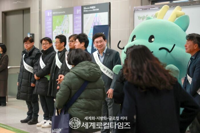 3일 오전 8시, 이상일 용인시장과 시 관계자, 용인경전철 운영사 직원 등 20여명이 시민들에게 건네는 새해 인사다.