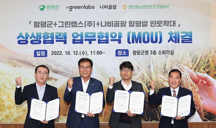 이번 협약에 따라 군과 ㈜나비골팜, 함평군RPC는 우수한 품질의 함평쌀을 생산‧공급하고, ㈜그린랩스는 안정적인 판로를 제공하는데 적극 협력하기로 했다.