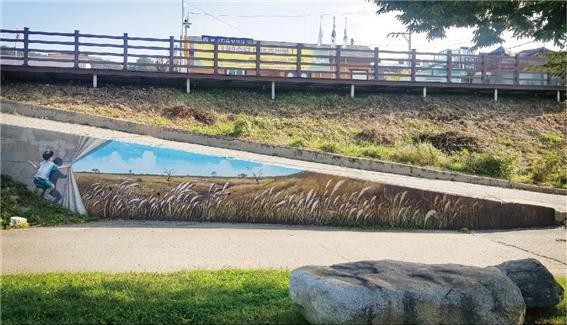 27일 원주시에 따르면 최근 원주천 환경디자인 개선을 위해 추진한 ‘원주천 수변공간 노후 시설물 벽화사업’을 완료했다.