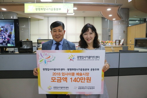 광명업사이클아트센터 관계자는 "업사이클 예술시장을 성황리에 마쳐 수익금을 기부할 수 있어 기쁘다"며 "많지 않은 금액이지만 문화 소외계층 청소년들이 다양한 문화체험을 하는데 보탬이 됐으면 좋겠다"고 말했다.
