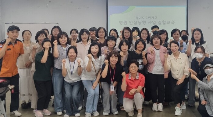 이와 관련해 경기도는 ‘1인가구 병원 안심동행 사업’의 서비스 품질 제고를 위해 지난 6월 18일과 27일, 경기상상캠퍼스에서 사업 담당공무원과 수행기관 운영자·동행인을 대상으로 직무역량 강화 교육을 실시했다. 11개 시군에서 총 58명이 참석해 응급처치와 안전보건, 민원 응대 및 감정노동 스트레스 관리 등 실무 중심의 교육을 이수했다. ’26년 사업 확대 방안에 대한 설명과 함께 실증특례업체를 활용한 차량지원 등 새로운 추진 계획에 대해 현장의견도 수렴했다.