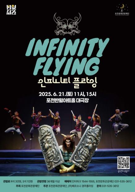 ‘인피니티 플라잉’은 6월 21일 오전 11시와 오후 3시, 2회에 걸쳐 포천반월아트홀 대극장에서 진행한다. 입장료는 R석 3만 원, S석 1만 원이다.