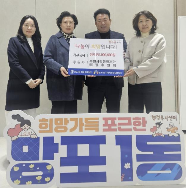 이에 김영희 망포1동장은 “명절마다 정기적으로 후원하시는 태장후원회에 깊은 감사의 인사를 드리며, 따뜻한 관심과 응원이 학생들에게 큰 힘이 되어 지역의 든든한 인재로 자라는데 토대가 될 것이다”며 감사 인사를 전했다.