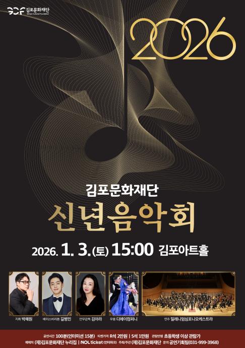 (재)김포문화재단 이계현 대표이사는 “본 신년 음악회와 함께 문화예술로 2026년 희망찬 새해를 특별하게 열어보시기 바란다.”며, “이번 첫 공연을 시작으로 2026년에도 김포시민을 위해 보다 많은 시민이 함께 할 수 있는 다채롭고 수준 높은 문화예술 사업들을 펼쳐갈 예정이오니 지속적인 관심과 성원을 바란다.”고 전했다.