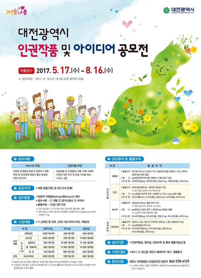 [세계로컬신문 라안일 기자]대전시가 ‘대전광역시 인권작품 및 인권정책 아이디어’공모의 접수기간을 연장한다.