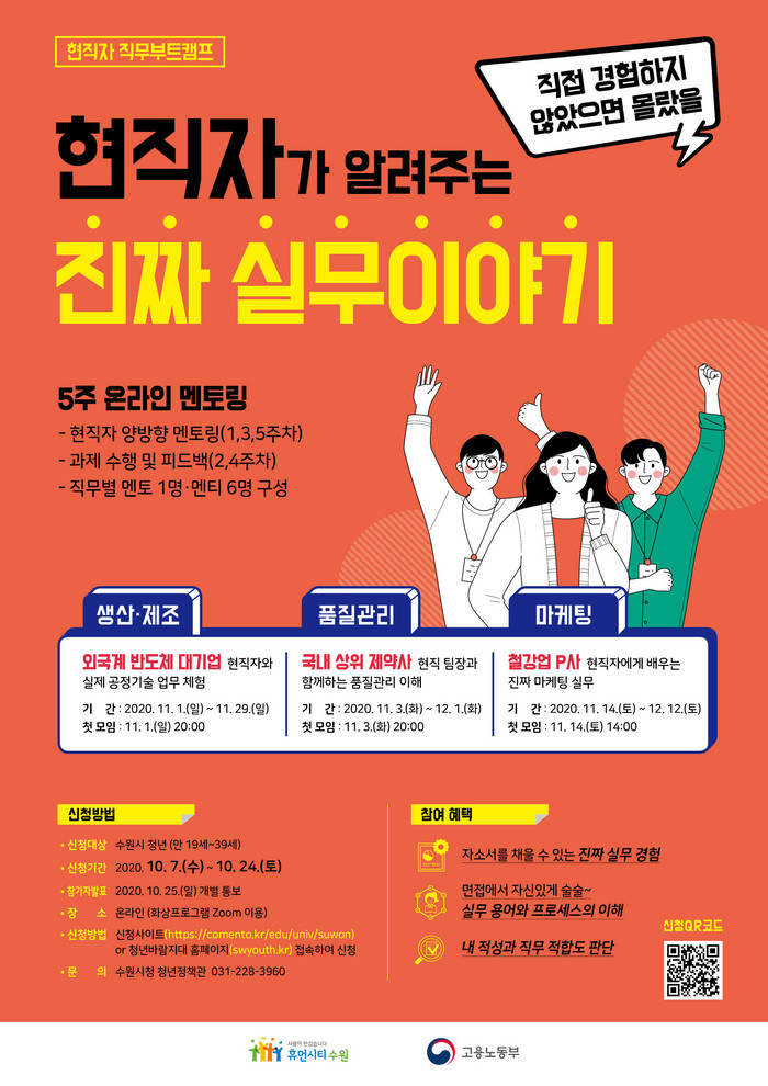 | ▲ ‘현직자가 알려주는 진짜 실무이야기’ 취업 멘토링 지원 홍보 포스터. (사진=수원시 제공) |