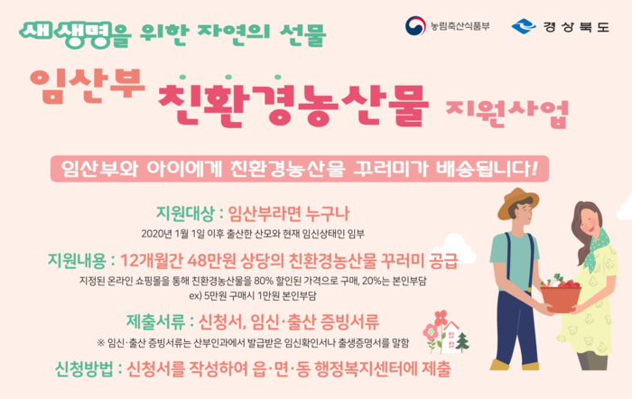| ▲ 임산부 친환경농산물 지원 시범사업 홍보 포스터. (사진=경북도 제공) |