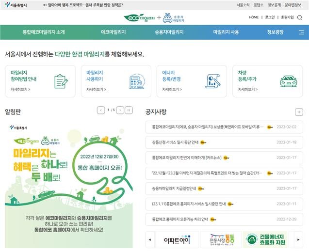서울시는 지난해 12월 각각 운영되던 누리집을 하나로 통합하고, 에코, 승용차 마일리지를 통합에코마일리지로 합산해 사용할 수 있도록 했다. 올해 상반기 중으로 서울사랑상품권을 추가하는 등 시민들이 선호하는 혜택을 추가할 예정이다.
