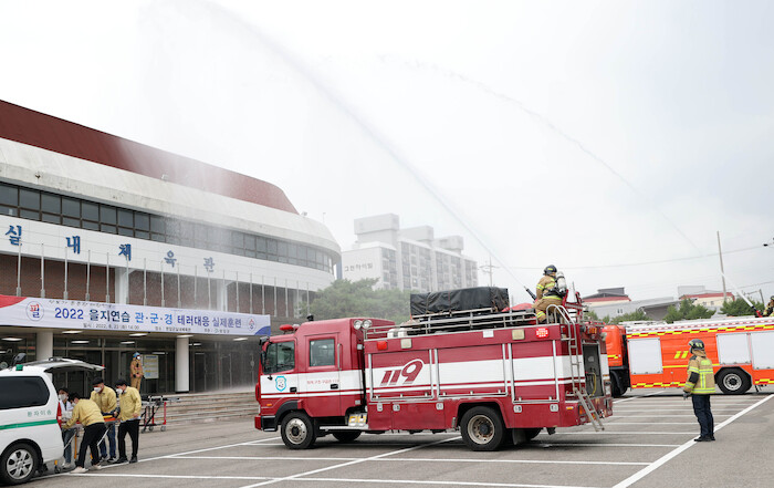 소방서에서는 화재 긴급진압을 위해 살수를 실시하고, 군부대에서는 추가 테러에 대비해 주변 경계 근무태세를 갖췄고, KT와 한전에서는 전력과 통신의 신속한 복구 활동을 펼쳐 6개 공공기관이 원활한 역할 공조와 비상대비 대응역량강화 훈련을 진행했다.