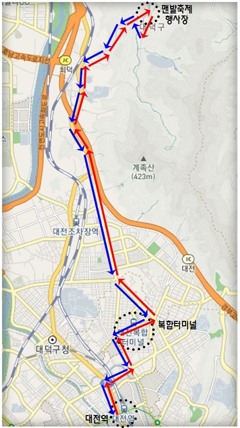 88번은 시민들과 외부 방문객을 위해 대전역과 복합터미널을 거쳐 행사장까지 경유하는 노선으로 오는 12일부터 27일까지 주말에 한해 오전 9시부터 오후 5시까지 35분 간격으로 운행된다.