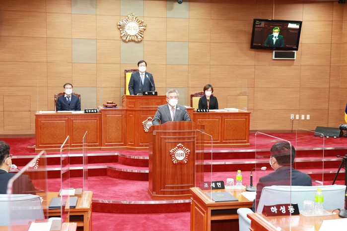 | ▲ 구충곤 화순군수가 2일 군의회 본회의장에서 발언하고 있다.(사진=화순군) |