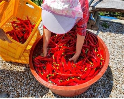 | ▲ 건조 전 고추를 세척 하고있다. |