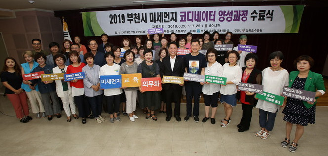 장덕천 부천시장은 지난 25일 열린 수료식에서 축하 인사를 전하며 “지난 해 10월 미세먼지 문제 대응 전담 기관인 미세먼지대책담당관 신설을 시작으로 본격적인 미세먼지 대책에 나섰다”며 “지난 7월 한국입자에어로졸학회와 협약을 통한 미세먼지 공동추진 자문단 구성, 그리고 오늘 미세먼지 코디네이터 수료까지 미세먼지 정책을 수행할 ‘행정-전문가-시민’이라는 퍼즐이 완성됐다”고 말했다.