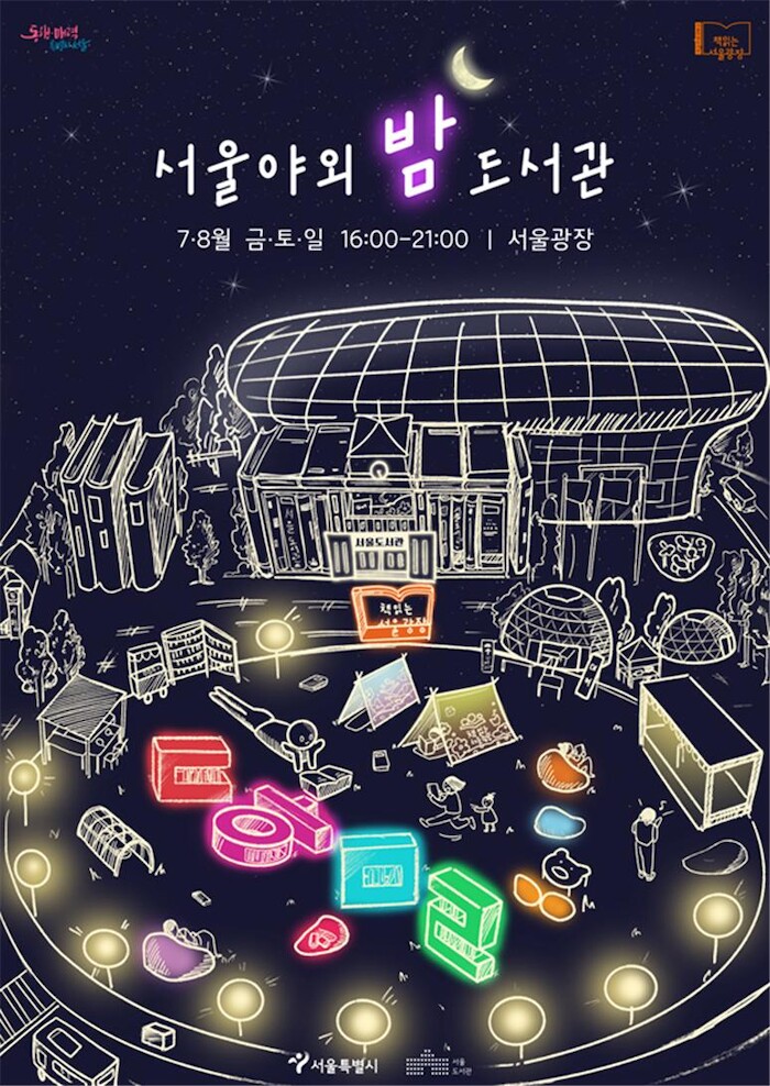 여름밤의 특별한 밤독서 경험을 선사할 ‘밤의 여행도서관’은 7~8월 금·토·일 오후 4시부터 밤 9시까지 서울광장에서 운영된다.