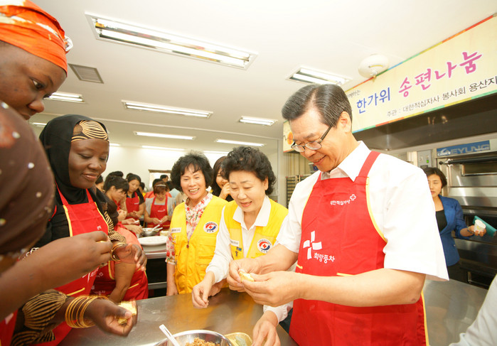 결혼이민자 여성 20명과 대한적십자사 봉사회 용산지구협의회원 20명이 짝을 이뤄 송편을 빚는다. 성장현 용산구청장도 참석할 예정이다.