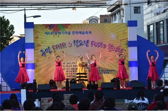 특히 구가 2011년부터 5년간 ‘문화예술 생각대로 조성사업’을 펼치면서 이곳 청소년 블루존 일대를 정비하고 인근에 ‘남구청소년창작센터’를 개관하면서 그야말로 주민과 청소년이 하나 되는 문화예술 축제로 자리매김하고 있다.