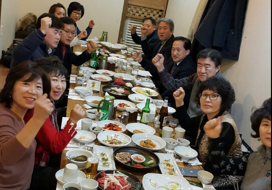 ▲ 세계일보 조사위원 경남 창원시협의회 회원들이 지난 13일 마실한정식에서 열린 신년하례회에서 파이팅을 외치며 기념촬영하고 있다. <이우춘 세계일보 조사팀장>