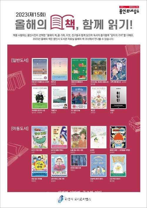 시 관계자는 “책을 사랑하는 용인시민들의 선택으로 ‘2023년 올해의 책’이 꼽혔다”며 “올 한 해 시민들이 20권의 책을 통해 가족, 이웃, 친구들과 뜻깊은 추억을 만들도록 풍성한 연계 행사를 준비하겠다”고 말했다.