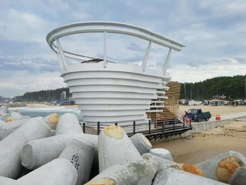 | ▲ 강릉시 안현동 사근진 해역에 설치 완료된 전망대 모습.<사진제공=강릉시청> |