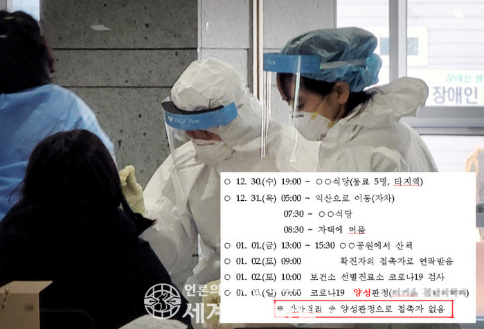 B씨는 지난 12월 30일 동료 5명과 타지역 식당을 찾았다. 다음날(31일) 자차로 익산으로 돌아온 그는 식당을 방문한 후 자택에 머물렀고 새해 첫날은 공원에서 산책했다.