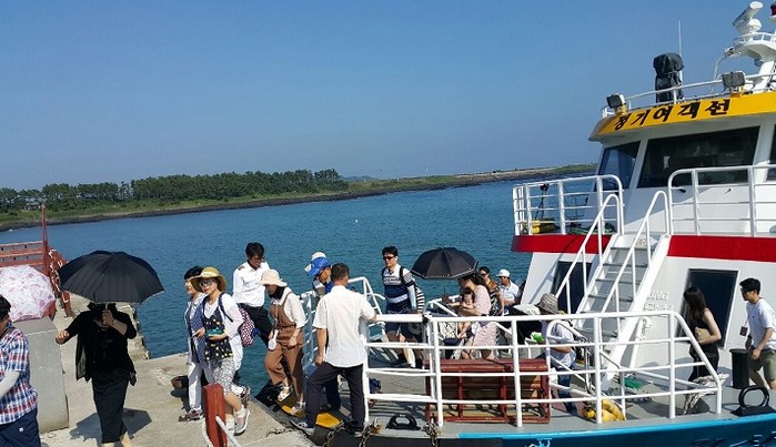 | ▲ 제주도 서귀포시 모슬포에서 가파도와 마라도를 오고가는 여객선이 운진항에서 운항된다. 사진은 정기여객선에서 관광객들이 내리는 모습.<사진제공=제주도청> |