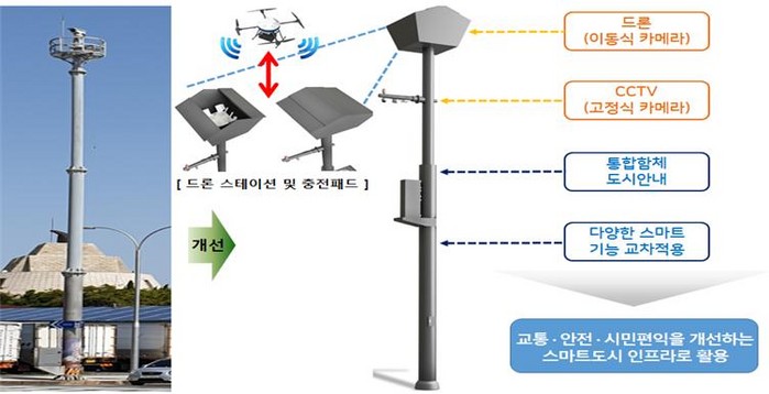 이번에 설치되는 드론 스마트폴은 교통정보 수집용 폐쇄회로(CCTV) 지주와 결합하는 방식으로, 도심지 내 교통·안전·환경 개선을 지원하는 시설로 드론의 활용 가능성을 모색할 계획이다.