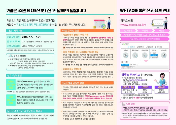 [세계로컬타임즈 유영재 기자] 부천시는 7월 주민세(재산분) 신고·납부의 달을 맞아 6,500여개 사업소에 안내문을 발송하는 등 적극 홍보에 나섰다.