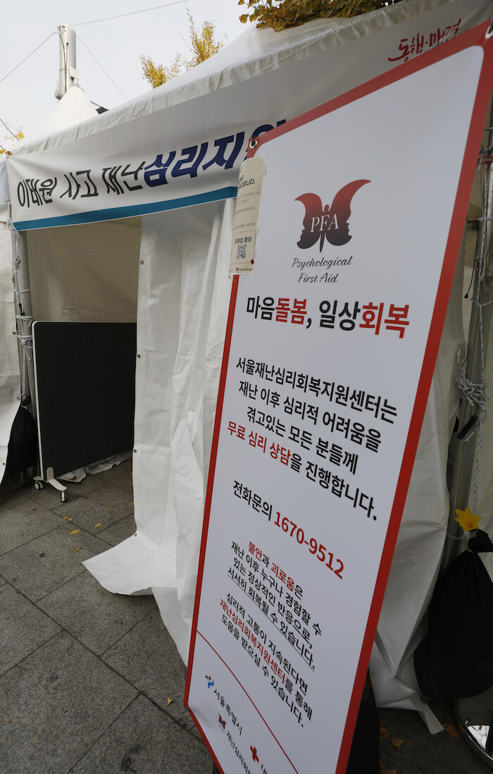 또한 서울 전역 ‘재난심리지원 상담소’ 운영 전담팀을 구성, 합동분향소 2개소(서울광장, 용산구이태원) 내 ‘재난심리지원 현장 상담소’를, 25개 자치구별 정신건강복지센터 내 상담소를 운영해 누구나 상담받을 수 있도록 하고 있다