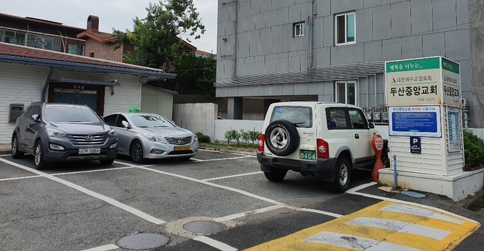 | ▲ 수성구의 ‘나눔주차장’을 활용하고 있는 지역 교회 부설 주차장 모습.(사진=수성구 제공) |