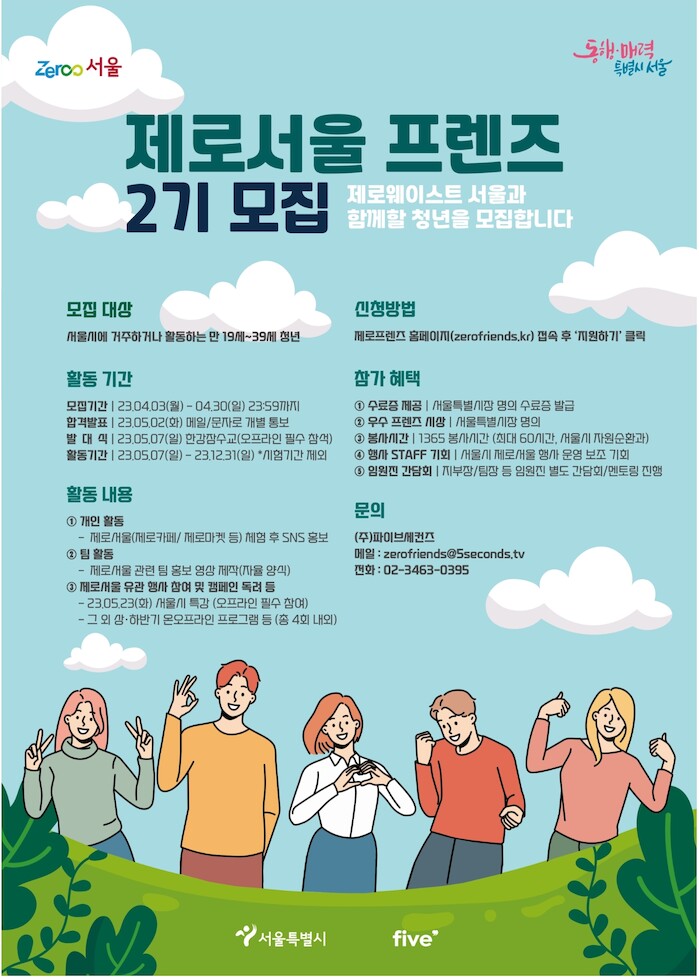 [세계로컬타임즈 이효진 기자] 서울시는 오는 5월부터 12월까지 활동할 ‘쓰레기 없는 서울’ 청년 홍보단 ‘제로프렌즈 2기’를 모집한다.