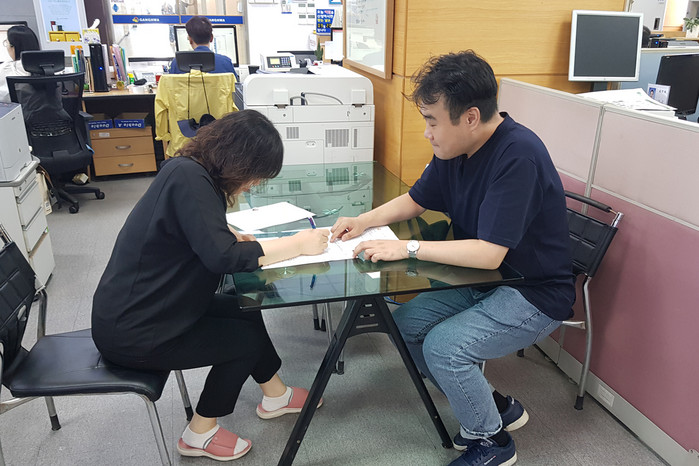 | ▲ 강화군 관계자가 ‘조상 땅 찾기’ 민원인과 상담을 하고 있다. (사진=강화군 제공) |