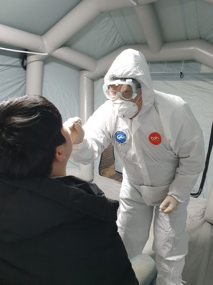 | ▲ 의료진이 코라나19 검사를 위해 검체를 채취하고 있다. (사진=용인시 제공) |