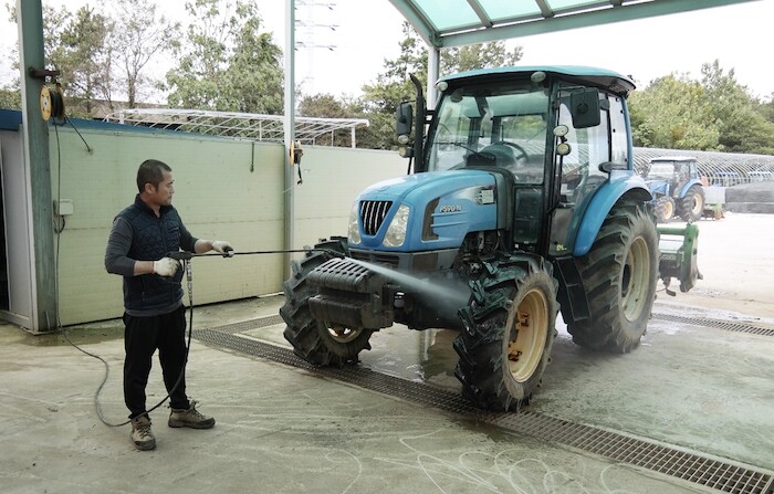 세차장에는 농기계 흙과 오물을 쉽게 세척할 수 있는 고압세척기와 세차에 따른 오염수를 정화할 수 있는 오폐수 정화 시설을 갖추고 있다.